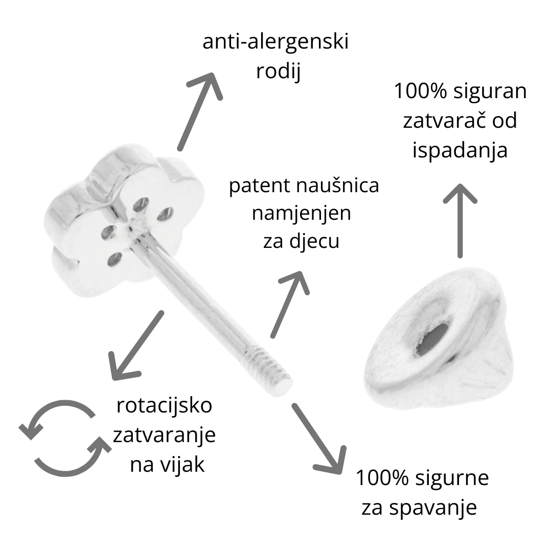 Dječje naušnice od rodiniranog srebra 925 s 18kt pozlatom